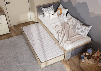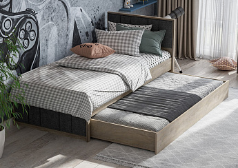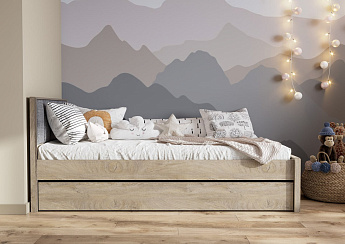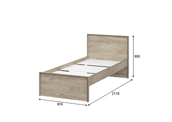 Кровать 900 (кр1) (900х2000) Этна (Дуб Эндгрейн/Белый гладкий), FI