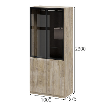 Шкаф Этна Ш 57*100 стеклянная дверь + гл.дверь (Дуб Эндгрейн/Эндгрей Лак), FI