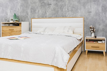 Кровать ОЛИВИЯ НМ 041.50-01 с мягкой спинкой (Дуб Сонома/Белое дерево/Велютто 16) МФ Сильва