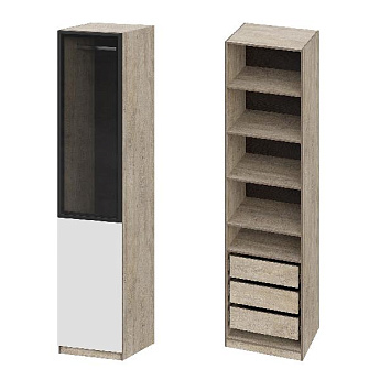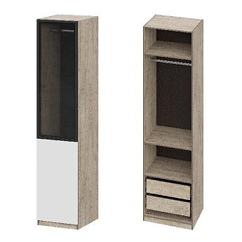 Шкаф Этна 57*100 (Софт Вайт/Стекло/Дуб Эндгрейн), Компоновка 2