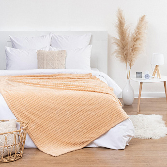 Плед Клетка 180*200 бежевый корал-флис