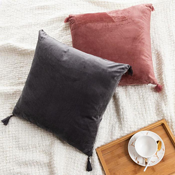Чехол на подушку с кисточками 45*45 серый велюр/6906469