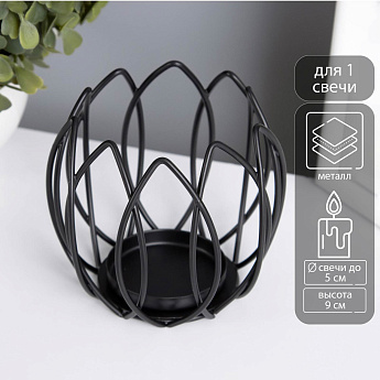 Подсвечник "Цветок Магнолии" чёрный