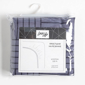 Простыня на резинке 140*200*25 Серые полосы,Поплин/9035786