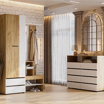 Прихожая Абрау (Дуб Золотой/Белый), FI, Компоновка 1