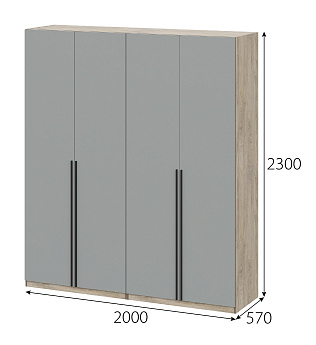 Шкаф Этна 57*200 (Софт грей/Дуб Эндгрейн), Компоновка 1