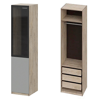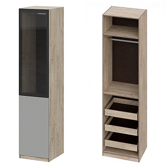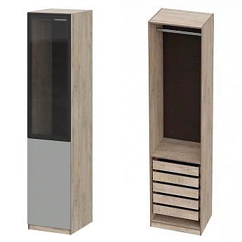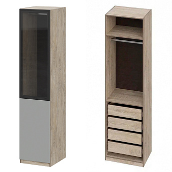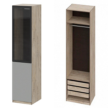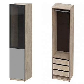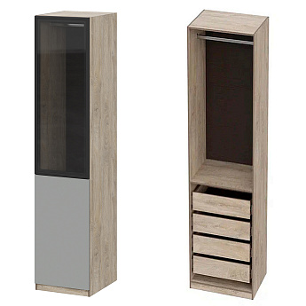 Шкаф Этна 57*50 (Софт Грей/Стекло/Дуб Эндгрейн), Компоновка 22