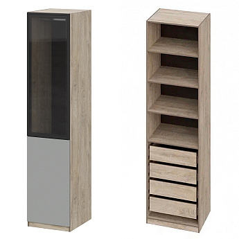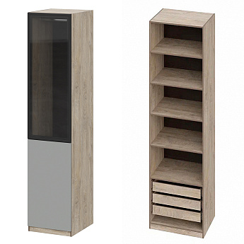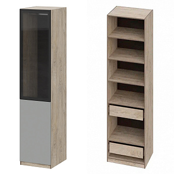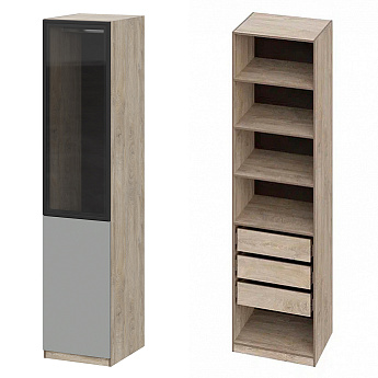 Шкаф Этна 57*50 (Софт Грей/Стекло/Дуб Эндгрейн), Компоновка 21