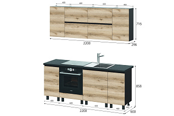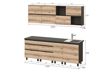 Кухонный гарнитур Берген (Дуб делано/Дуб венге), 2200 мм (2)