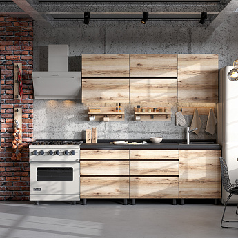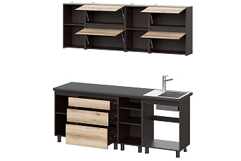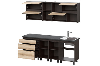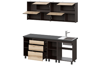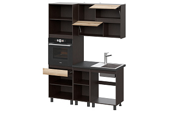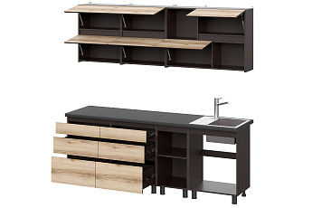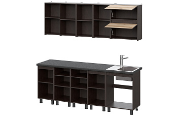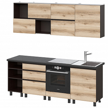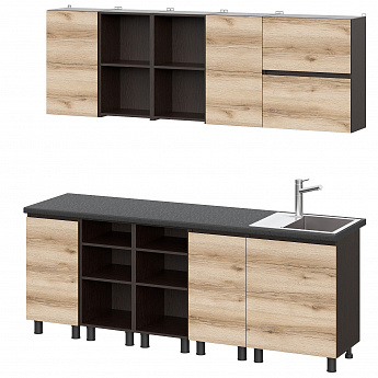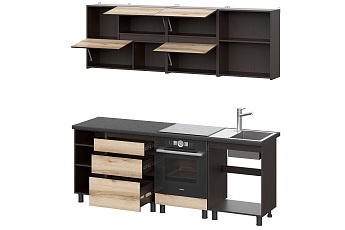 Кухонный гарнитур Берген (2000) с полками Отто (Дуб венге/Дуб Делано/Чёрный), FI