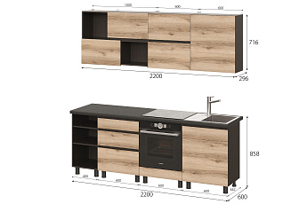 Кухонный гарнитур Берген (Дуб делано/Дуб венге), 2200 мм (3)