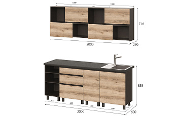Кухонный гарнитур Берген (Дуб делано/Дуб венге), 2000 мм (1)