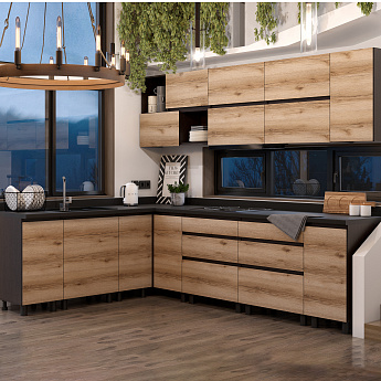 Кухонный гарнитур Берген угловой (Дуб венге/Дуб Делано/Чёрный), Компоновка 2