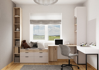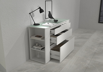 Стол Джастин письменный 12.154 (Белый PE шагрень/Дуб Белый exclusive OW D4430), Моби
