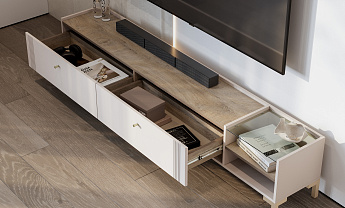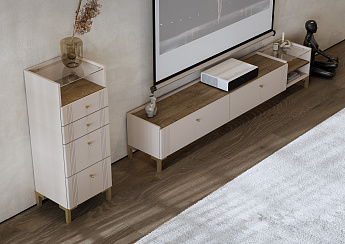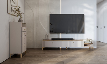 Тумба для телевидеоаппаратуры Одетта ТБ2 (Меланж/Дуб Эндгрейн/Кашемир софт), FI