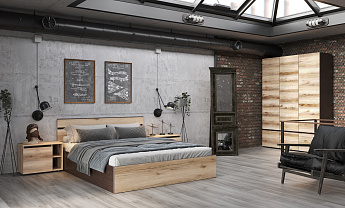 Кровать двойная 1.4 (1400х2000) Берген Симпл (Дуб делано/Дуб венге), FI