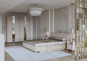 Кровать Одетта 1,6 (Меланж/Дуб Эндгрейн/Кашемир), FI