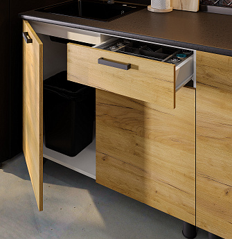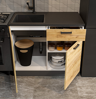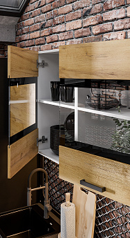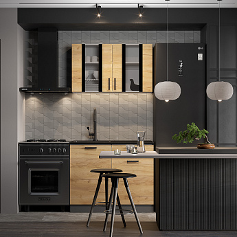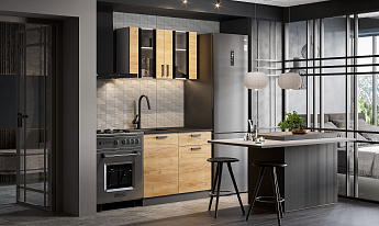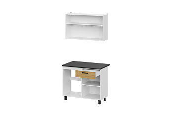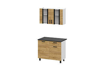 Кухонный гарнитур Абрау (1000) (Белый/Дуб золотой/Чёрный), FI