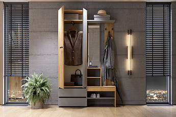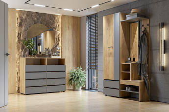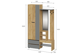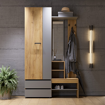 Вешалка с зеркалом Абрау (Дуб Золотой/Графит серый), FI