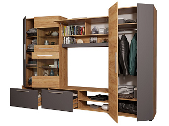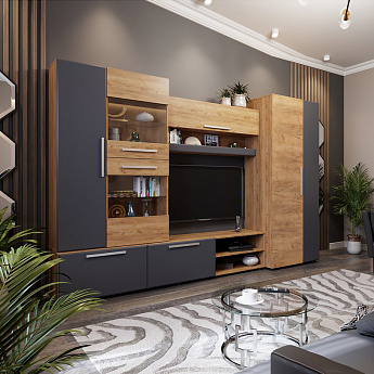 Стенка САФАРИ НМ (Дуб Крафт золотой/Графит), Стиль
