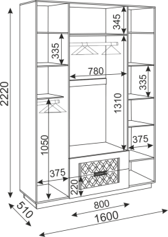 Шкаф для одежды Венеция 01 3-х дв. с ящиком б/з (Бодега Светлый), Иж
