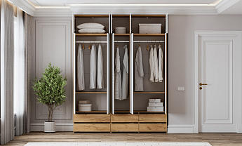 Шкаф с ящиками Тиффани №28 (4 двери) (Белый/Белый текстурный), РИННЭР